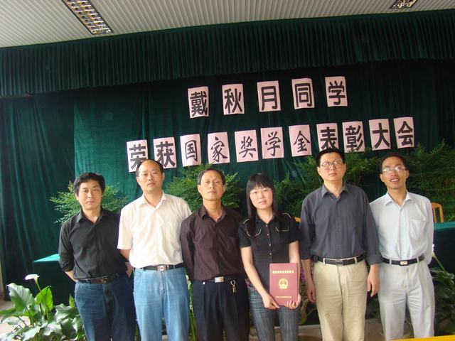 大会由管委会副主任朱和记同志主持,党总支副书记、管委会副主任吴向群同志传达了胡锦涛总书记5月3日视察北京大学后对青年大学生提出的四点殷切期望并发表了热情洋溢的讲话,他鼓励同学们向戴秋月学习,以一颗感恩的心回报党和政府的温暖与关怀,刻苦钻研专业知识,努力提高专业技能,掌握为人民服务的过硬本领,“自立自强,励志成才,报效祖国”。党总支书记、管委会主任吴宗铎同志向戴秋月同学颁发了由教育部长周济签发的“国家奖学金”j9九游会老哥俱乐部交流的荣誉证书。